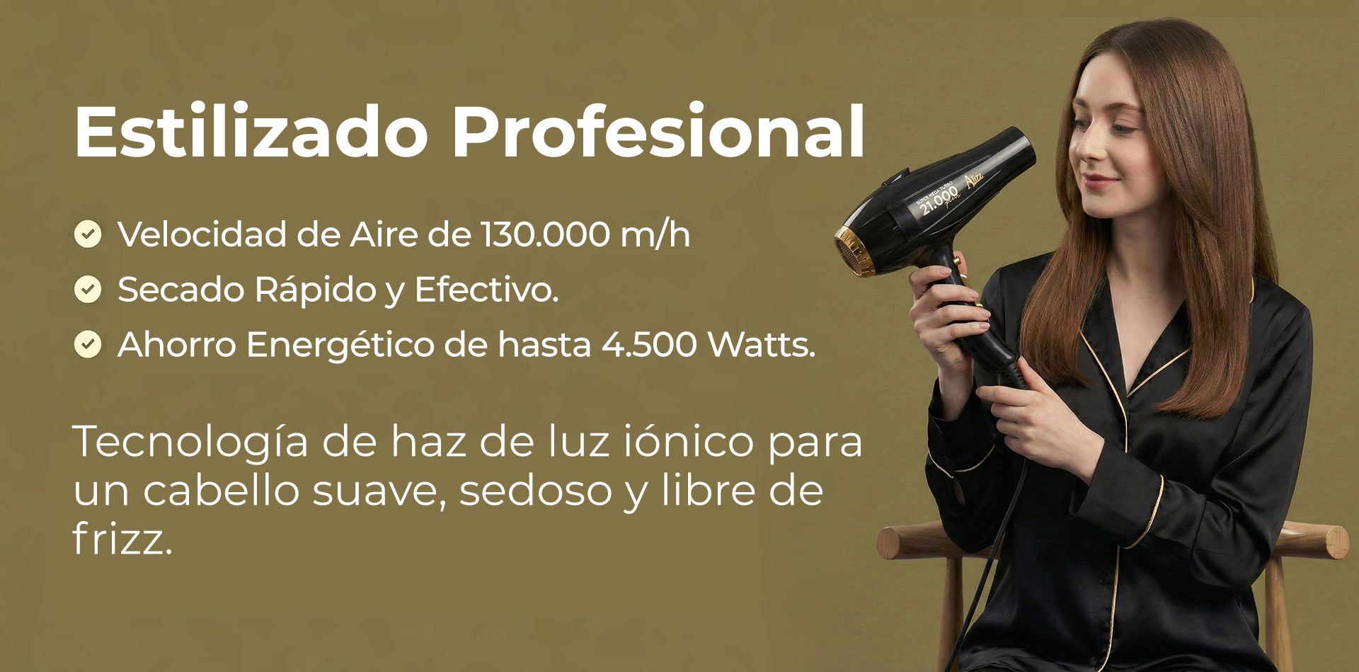 Haz de Luz Iónico: Tecnología avanzada que reduce el frizz y aporta máxima suavidad.