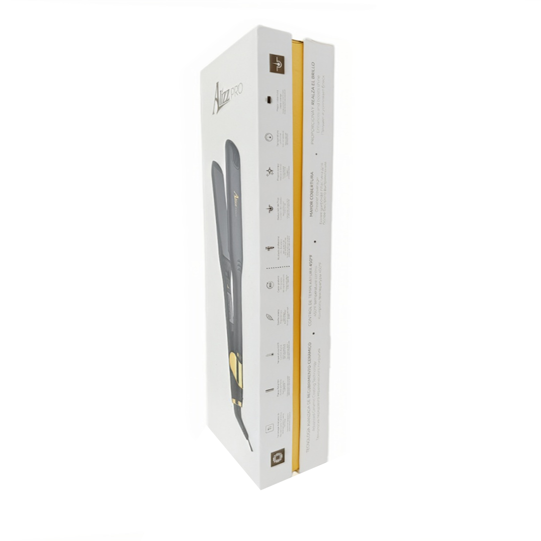 Nuestra plancha para cabello Profesional ALIZZ PRO+SIZE logra un ACABADO PROFESIONAL en los procesos de alisados progresivos y tratamientos de KERATINA rápidamente, gracias a sus PATINES ULTRA ANCHOS de 5,5cm que logran abarcar mayor cantidad de cabello en una pasada. Consigue LISOS perfectos y ondas abiertas.